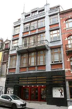 The museum's location was symbolic, since Marc Sleen started his career as cartoonist in 1947 whilst working for the newspaper De Nieuwe Gids, whose office was located on the Rue des Sables/Zandstraat.[4] The original building was erected in Art Nouveau style by the architects Fernand Brunfaut and his son Maxime Brunfaut.