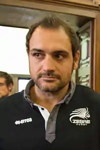 Marco Bortolami ([ˈmarko bɔrtoˈlami]; born 12 June 1980) is a rugby union coach and retired Italian international player, whose career includes experience playing in the national top-level Italian (Petrarca Padova), French (RC Narbonne), and English (Gloucester Rugby) championships, before joining the then recently-born Pro14 (with Aironi Rugby and then Zebre). Praised for his leadership skills, he captained all the teams he played for at professional level.[1][2][3] At international level, he also captained the Italian side since 2002 till the 2007 Rugby World Cup, before being replaced in the permanent role by Sergio Parisse. He currently serves as head coach for Benetton Rugby in the United Rugby Championship.[4]