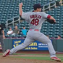 On August 30, the Cardinals recalled Gonzales, and he gained his first MLB win in a 13–2 romp over the Chicago Cubs. He completed six innings, allowed one run on three hits, two walks, and struck out five.[22] Gonzales' third win of the season came against the Rockies by a score of 4–1 on September 14 as he struck out nine in 5+2⁄3 IP. The nine strikeouts were the most by a Cardinals left-handed rookie since Rick Ankiel on September 13, 2000.[23] He made 10 total MLB appearances, five as a starter, completing 34+2⁄3 IP, allowing 32 H, 21 BB, 16 ER and a 4.15 ERA with a 4–2 W–L.[24] In 31 total games – including 26 starts – between three minor league levels and the major leagues, Gonzales allowed a 2.81 ERA with a 13–7 W–L record and 148 SO in 156+2⁄3 IP.[25]