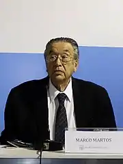 Marco Martos Carrera (born November 29, 1942, in Piura, Peru) is a Peruvian poet and the President of the Academia Peruana de la Lengua.[1] It's assumed from critics to be one of the most important persons of the Peruvian "60's generation". Critics also appoints that he uses a simple way of expression with an ironic way to project the life. We can find in his work topics like 'loneliness' and 'existentialism'.