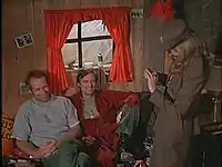 Colonel Potter has had enough, orders Frank to his office and has Radar free the family and give them some food and extra provisions, which infuriates the paranoid Frank. Frank refuses to relax and, on the verge of having a complete mental breakdown, threatens to kill Hawkeye, B.J. and Potter with his rifle when mentioned that he is heading for a Section Eight. Radar then enters the room to tell Frank that he has a phone call from someone in the States. It turns out to be Frank's mother and he tells her of the 4077 MASH's hatred to him and that Houlihan tricked Frank into falling in love with her. Hawkeye, B.J., Potter and Radar, overhearing the phone call from Potter's office, feel bad for him. Frank's exhaustion finally catches up to him when he falls asleep while on the phone, and Hawkeye and B.J. then carry him back to the Swamp.
