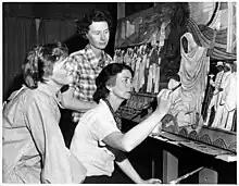 ![]() Seated in the foreground is Esther Bruton; Helen Bruton is wielding the brush; while Margaret Bruton stands. | |