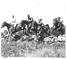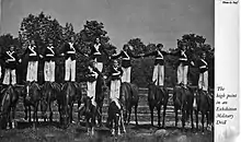 Self founded the New Canaan Mounted Troop in 1939, part of the Junior Cavalry of America.[16] Open to boys and girls both, and described by some as "scouts on horseback",[17] the purpose of the troop was to teach children life skills as well as impart knowledge about horses and horsemanship. The children wore uniforms and not only rode horses, but also learned about grooming and other basic horse care as well as doing military exercises such as marching in figures. Among the members of the troop in its early years was future Olympian George H. Morris, who became a member in 1945 when he was seven years old.[11] The New Canaan Mounted Troop is still in existence and is now a 501(c)(3) non-profit organization with the mission to "build leadership, responsibility and confidence in youth through sound horsemanship." As in Self's time, the program still requires children to do horse care and barn-cleaning chores as well as learning how to ride. Today the program has added equine-assisted therapy to its repertoire, conducts summer camps, and provides scholarships so children of modest means can participate.[17]