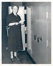 Margaret Cross Norton was also a founding member of the Society of American Archivists, acting in a variety of roles throughout her decades-long tenure. Those roles included the society's first vice president from 1936 to 1938, the society's fourth president from 1943 to 1945), and a Council member and editor of the American Archivist from 1937 to 1942 and 1946 respectively.[7] Her activities in the American Historical Association (AHA), the American Library Association (ALA) and the National Association of State Libraries (NASL) are also well documented. Through these associations, she published writings and made public addresses broadcasting her focus on the utilitarian value of archives and a desire to distinguish the archive professionals as separate from historians and librarians.[3] One such address at the 1929 annual AHA meeting was met with skepticism. Six months later, however, a very similar speech with accompanying article was accepted and well regarded by the NASL. This and many other papers became landmarks for the push towards professional recognition of archivists as skilled professionals. She taught the first ever course in archivology offered in an American library school in 1940 at Columbia University.[8]