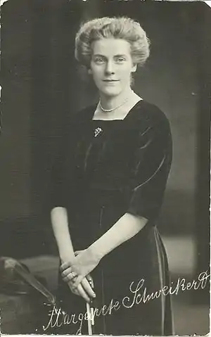 Margarete Schweikert  (16 February 1887 – 13 March 1957)[1] was a German composer,[2] music critic, violinist, and pianist who composed chamber music, approximately 160 songs,[3] and a children's operetta, The Frog King.[4]