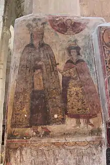 The religious dichotomy of the court of Tbilisi added another, socio-cultural meaning to Rostom's political marriage to Mariam. Kartli, ruled by the Muslim king, whom his mostly Christian subjects accused of transplanting Iranian and Muslim customs into the country, acquired a patroness of the Christian church and culture.[7] Acting with the consent and approval of Rostom, sometimes even independently of him, Mariam was able to reduce taxes levied on the church institutions and perishes, repair and refurnish the churches across eastern Georgia, including the Sioni church in Tbilisi, the patriarchal cathedral of the Living Pillar in Mtskheta, and the Alaverdi church in Kakheti.[2] She was, however, unable to save her confessor, Catholicos Eudemus I, from Rostom's revenge; he was arrested and strangled in a prison cell in 1642 for having conspired with the exiled king Teimuraz to assassinate Rostom.[8]
