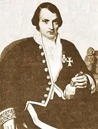 Mariano Eduardo de Rivero y Ustariz (October 22, 1798 – November 6, 1857) was a prominent Peruvian scientist, geologist, mineralogist, chemist, archaeologist, politician and diplomat. His publications about his discovery of Humboldtine (an iron-oxalate), demonstrating the existence of organic-minerals; about deposits of copper and sodium nitrate (saltpeter) near Tarapacá in the Atacama Desert; about bird-guano and coal in Peru and their possibilities of industrialization as well were forward-looking and made him a pioneer of mining education in South America and the most notable Peruvian scientist of the 19th century.