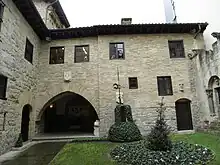 Both Zufía's parents came from Carlist families and were Carlists themselves.[25] His father was member of Traditionalist trade unions and under the pen-name “Rozala Afizu” he contributed to Traditionalist dailies, El Pensamiento Navarro and La Constancia.[26] Already in his early teens the young Mariano engaged in the movement; he joined Muthiko Alaiak, the folk group animated by the iconic Pamplonese Carlist Ignacio Baleztena, he played football in the amateur team formed by boys from the local Carlist círculo,[27] entered Agrupación Escolar Tradicionalista and took part in school strikes of 1935–1936, staged as protests against what was perceived as anti-religious educational policy of the Republic.[28] A later hagiographic biography underlines Zufía's Catholic conviction as the key motive behind his political choice, and suggests that it outweighed some socialist leaning, took after his maternal uncle.[29] In the mid-1930s Zufía enlisted to requeté and as an adolescent boy trained with wooden rifle in the hills surrounding Pamplona.[30] He actually served in requeté combat units during two short strings, in the summer of 1936 and in the spring of 1937.