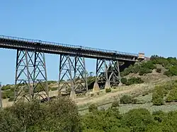 It was built in 1927–29 by the Victorian Railways Construction Branch, being the largest trestle bridge in Australia when completed in June, 1929.[2] Until the completion of the Sydney Harbour Bridge, the viaduct was also the highest railway bridge in Australia. It employed 200 people during its construction, with one fatality, and is listed on the Victorian Heritage Register.[3]