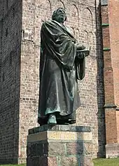 In front of the church, on the south-west side, is the Luther monument, modelled on the Original in Worms by Ernst Rietschel, which was created in 1903.