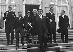 • Ten cabinet member would later serve in the De Jong cabinet: Joseph Luns (Foreign Affairs), Johan Witteveen (Finance), Piet de Jong (Prime Minister), Leo de Block (Economic Affairs), Joop Bakker (Deputy Prime Minister), Joop Haex (Army), Adri van Es (Navy), Willem den Toom (Defence), Hans Grosheide (Education) and Mike Keyzer (Transport and Water Management).