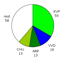 The Marijnen cabinet was the executive branch of the Dutch Government from 24 July 1963 until 14 April 1965. The cabinet was a continuation of the previous De Quay cabinet and was formed by the Christian-democratic Catholic People's Party (KVP), Anti-Revolutionary Party (ARP) and Christian Historical Union (CHU) and the conservative-liberal People's Party for Freedom and Democracy (VVD) after the election of 1963. The cabinet was a centre-right coalition and had a substantial majority in the House of Representatives with prominent Catholic politician Victor Marijnen the Minister of Agriculture and Fisheries in the previous cabinet serving as Prime Minister. Protestant Leader Barend Biesheuvel served as Deputy Prime Minister, Minister of Agriculture and Fisheries and was given the portfolio of Suriname and Netherlands Antilles Affairs.