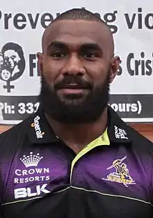 Koroibete joined the Melbourne Storm mid-season on a 2+12-year contract effective from 23 June 2014.[15][16] In Round 18 against the Canterbury-Bankstown Bulldogs, Koroibete made his debut for the Melbourne Storm replacing Sisa Waqa on the wing in the Storm's 6–4 loss.[17] In the next match in Round 19 against the Canberra Raiders at AAMI Park, Koroibete scored his first club try in the 28–14 win.[18] Koroibete played in 10 matches and scored 6 tries for the Storm in 2014 after his mid-year transfer to the club.