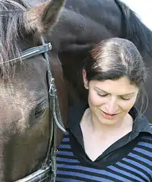 In 1998 the book service of Algeria called upon her to illustrate a new edition of Les chevaux du Sahara.[10] She contributed to various books for different publishers and to equestrian magazines such as " Cheval pratique ". A book lover, she enjoys working with a team, publishers and authors, sharing knowledge. In 2002 she hosted a presentation of her works about horses, followed by a workshop at the Arab World Institute in Paris ; her book Les chevaux du vent, oiseaux sans ailes, was published at the same time.[5][11]
