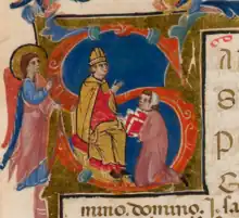![]() Sanuto presenting his Liber secretorum in three books to Pope John XXII | |