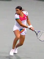Bartoli at the 2008 Pilot Pen Tennis tournament, where she beat Tsvetana Pironkova 2–6, 6–4, 7–5