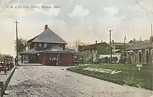 In 1888, a two-story brick station was built by the Milwaukee Road for $30,000. This station was the third station in Marion, replacing stations built in 1873 and 1878.[3]:22 The town was then established as a division point of the Iowa District First Division, relocated from Van Horne, 27 miles (43 km) west of Marion.[4][5] With the division point moving to Marion, maintenance shops and a roundhouse were also built on the eastern edge of town.[6] The development of the railroad was considered vital to the growth of Marion, and the Milwaukee Road was the largest employer in Marion at one point.[3]:24 A streetcar station was also established across the street from the Milwaukee Road station, and has since been demolished.[7]:32