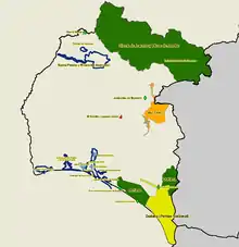 The current hydrography goes back to the 1755 Lisbon earthquake and the successive accumulation and removal of sediments, as well as being influenced by the Guadiana and recently the Tinto-Odiel rivers because of the construction of the Juan Carlos I breakwater and other dikes that modify the flow of sediments.[4] For a structure by zones, see the structure of the marshes.