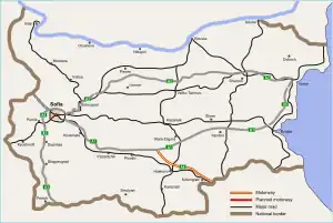 ![]() Maritsa motorway highlighted in red and yellow | |