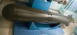 The Mark 34 torpedo (initially Mine Mk 44, technically Mk 34 mod 1) was a United States torpedo developed that entered service in 1948. It was an improved version of the Mark 24 FIDO passive acoustic homing torpedo developed during World War II for launch from fixed-wing aircraft.[2] The principal differences from the Mark 24 were the use of two propulsion batteries, which could be used in parallel while the torpedo was searching for a target to provide greater endurance and in series to provide greater speed in attack mode.