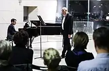 On 8 November 2018, Mark Glanville and Mark Verter (pianist) gave their first performance of Citizen of Nowhere: A Sung Life, a programme devoted to the songs of Mieczysław Weinberg at the Martin Harris Centre, Manchester University[14] followed by a performance at the Purcell Room on 3 February 2019.[15] Glanville was subsequently invited to perform Weinberg songs for Israeli Opera in April 2019[16] and again with Marc Verter on Weinberg's 100th birthday, 8 December 2019, as part of the Polin Museum Warsaw's centennial celebrations for Weinberg which also featured Gidon Kremer and the Kremerata.[17]