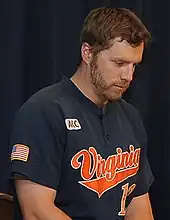 Reynolds wearing a Virginia Cavaliers baseball jersey in 2013
