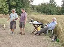 Mark Roberts with fellow archaeologist Richard Morris (centre) and novelist Alan Garner (right) at Blackden, Cheshire, in 2011.