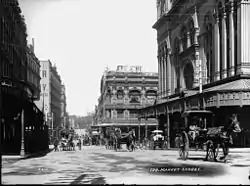 Market Street is a street in the city centre of Sydney in New South Wales, Australia. It runs from Sussex Street near Darling Harbour in the west, to Elizabeth Street at St James railway station in the east.