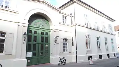 The Markgräflerhof is a baroque palace in Basel, Switzerland, built by the margraves of Baden-Durlach, who used it as an extraterritorial residence as their principality including its residences was often the victim of wars and armies. The margraves had several residences in Basel, but the construction of current palace started under margrave Frederick VII in 1698 when a fire destroyed the previous building. The palace was ready to moved in by 1705. The architect was an entrepreneur Augé who based himself on plans from a book by the French architect Charles Daviller. Frederick VII's successor Charles III William also often used the palace. But afterwards, the margraves predominantly resided in Karlsruhe. The city of Basel purchased the palace in 1807 and the University Hospital of Basel has used the building since 1842.