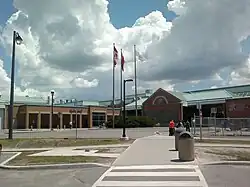 The hospital's helipad designation is (TC LID: CPH7).[4] An original heliport was located at the east end of the hospital to facilitate medical airlifts to and from the hospital. Transfer of patients requires a journey of approximately 150 ft (46 m) from the pad to the near entrance at the rear. Upon completion of the rebuilding of the hospital in 2014, the helipad is now on the roof of the new emergency wing and allows the transfer of patients directly into the hospital building. The new pad is an elevated octagon shaped pad which connects the roof of the hospital by a steel frame with a ramp to the entrance to the hospital. The relocation provides a safer landing area given that the old pad was next to public access roads around the rear of the hospital. The old pad site was removed (along with a Windsock nearby) during the re-development of the new Cornell Community Centre & Library and used as a parking/storage space by construction crews.