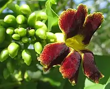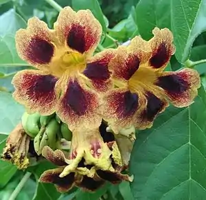 Markhamia zanzibarica, also known as bell bean tree or maroon bell-bean, is a species of plant in the family Bignoniaceae.[3] It is found in East Africa and Southern Africa, from Kenya to South Africa.[4]