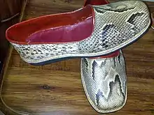 Markoob or markoub (Arabic: مركوب; plural Marakib) is a type of footwear designed for Sudanese men crafted from animal skins.[1] Alongside the white turban, jalabiya, waistcoat, top, and trousers, the Markoob forms part of the Sudanese national attire. In the past, there existed a female counterpart although it has now become a rarity.[2] It has a historical evolution starting with the "Claudo" shoe, followed by "Abu Adina," leading to the enduring traditional Sudanese shoe.[3]