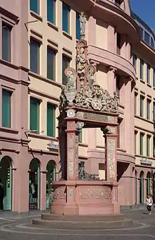 The Marktbrunnen in Mainz is a renaissance fountain located at the ″Markt″ (market place) of Mainz. It was donated by elector Albert of Mainz and crafted in the workshop of the Mainz sculptor Hans Backoffen. The Marktbrunnen represents one of the first architectural formed decorated fountains of the renaissance.[1]