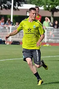 It was announced on 3 May 2012 that Werder Bremen opted not to extend Rosenberg's contract.[230] Because of his aerial ability and his strength, Rosenberg was considered a dangerous header of the ball, but he was also dangerous when having the ball at his feet. Rosenberg soon became fan favourite and earned the nickname "Rosi".[231] Rosenberg struggled to perform in the league, but proved to be a very efficient goal scorer in both the European and domestic cups. He established himself in the starting eleven and formed a partnership with strikers such as Hugo Almeida and Boubacar Sanogo.