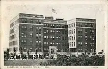 On January 3, 1921, Marland incorporated the "Marland Oil Company" in Delaware to acquire through an exchange of stock control of the Marland Refining Corp. and Kay County Gas Co.[3] The company consolidated its growth acquired several small oil companies such as Comar Oil Company, Tom Jones Oil Company, Kenney-Cleary Oil Company, Francoma Oil Company, John S. Alcorn Oil Company, among others.[4] In 1926 Marland partnered with the Hudson's Bay Company to form the Hudson's Bay Marland Oil Company. After the merger with Conoco in 1929, it was renamed the Hudson's Bay Oil and Gas Company. Conoco held its controlling interest until 1982.