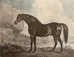 Marske stood at the Duke's Cumberland stud until his owner died in 1765. Being a rather average horse up to that point, he was then sold at Tattersall's to a Dorset farmer for a 'trifling sum'. At the farm, he covered mares for half a guinea.[2] The farmer then sold him for only 20 guineas to William Wildman. He covered mares at Bisterne, Hampshire, for 3gs and 5s in 1767, 5gs and 5s in 1769 and 10gs and 5s in 1770 before his fee was raised to 30gs and 5s.[2] However it wasn't until his greatest son, Eclipse, showed talent on the track that Marske became extremely popular. He was then sold for a large profit of 1,000 guineas to Willoughby Bertie, 4th Earl of Abingdon, who raised his stud fee to 100 guineas (equivalent to £14,600 in 2021). During his 22 years at the Earl's stud in Rycote, Oxfordshire, Marske sired across the next generation 154 winners.[3] Top offspring include:
