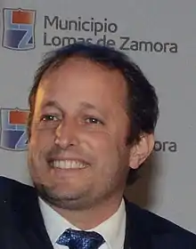 Martín Insaurralde (born 30 May 1970[1]) is an Argentine politician of the Justicialist Party.[2] He was intendente (mayor) of the Lomas de Zamora partido (municipality) from 16 December 2014 to 20 September 2021,[3] and was previously between 28 October 2009 and 4 December 2013. Between 2013 and 2014, he was a member of the Argentine Chamber of Deputies.[4] Since 2021, he has served as chief of the Cabinet of Ministers of Buenos Aires Province, under Governor Axel Kicillof.