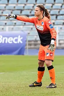 Tufeković began her career in 2004 as a field-playing all-rounder in the male F youth team at VfL Obereisesheim.[2] During this time she attended the sports school Ruit in Ostfildern in addition to her active football career.[3] In 2009, she moved from Obereisesheim to the youth team at TSG 1899 Hoffenheim and retrained as a goalkeeper. A year later, at the age of 17, she moved up to the senior team, where she was a substitute goalkeeper in the 2nd Bundesliga. She did not play in her first season and was on the bench as a substitute goalkeeper in four games. On the 18th day of the 2nd Bundesliga season 2011/12, she made her senior debut on April 15, 2012 against 1. FC Köln. She played in four more games through the end of the 2012 season before going back to the second team in September 2012. Due to injuries, Tufeković only played in six games for the reserve in the Regionalliga Süd. After the 2012/13 season, the first team was promoted to the Bundesliga and so they made their debut in the top female division on April 13, 2014 against 1. FFC Turbine Potsdam.[4]