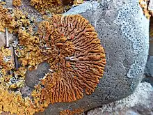 - ↑ Fedorenko, Natalya M.; Stenroos, Soili; Thell, Arne; Kärnefelt, Ingvar; Elix, John A.; Hur, Jae-Seoun; Kondratyuk, Sergij Y. (2012). "Molecular phylogeny of xanthorioid lichens (Teloschistaceae, Ascomycota), with notes on their morphology". In Kärnefelt, Ingvar; Seaward, Mark R.D.; Thell, Arne (eds.). Systematics, biodiversity and ecology of lichens. Bibliotheca Lichenologica. Vol. 108. pp. 45–64. ISBN 978-3-443-58087-2.
