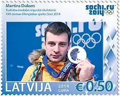 Dukurs on a 2014 Latvian stamp