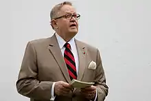 After the primaries, Ahtisaari returned to his work in Geneva, and did not start his presidential campaign until the end of October.[6] Ahtisaari narrowly won over his second round opponent, Elisabeth Rehn of the Swedish People's Party.[12] During the campaign, there were rumours spread by some political opponents of Ahtisaari that he had a drinking problem or that he had knowingly accepted a double salary from the Finnish Foreign Ministry and from the United Nations while trying to negotiate an end to the Bosnian War. Ahtisaari denied both allegations and no firm proof of them has emerged. During the three-week campaign between the two rounds of presidential elections, Ahtisaari was praised by his supporters for being more compassionate towards the many unemployed Finns than Rehn, who as Defence Minister had to officially support the Aho government's strict economic policies. A minor controversy arose during a town hall-style presidential debate in Lappeenranta, southeastern Finland, when an apparently born-again Christian woman in the audience asked Rehn what her relationship with Jesus was. Rehn replied that she had personally no proof that Jesus had been a historical person. Ahtisaari ducked a precise answer by stating that he trusted the Lutheran confession even on this issue.[22][23][24] He was sworn in on 1 March 1994.[12]