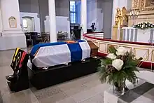 Ahtisaari died from complications of Alzheimer's disease in Helsinki, on 16 October 2023, at age 86.[73][74][75] His state funeral was held on 10 November 2023 in Helsinki Cathedral at 1 p.m., after which he was buried at the Hietaniemi Cemetery in Helsinki.[76][77]