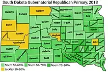 - ↑ "Jackley, Noem face-off in final contentious debate before primary election". dakotanewsnow.com. May 31, 2018. Retrieved July 6, 2021.