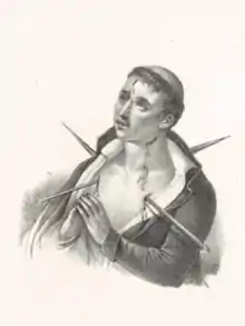 Pedro Ortiz de Zárate (1622 – 27 October 1683) was an Argentine Roman Catholic priest and Giovanni Antonio Solinas (15 February 1643 – 27 October 1683) was an Italian Roman Catholic priest and a professed member of the Society of Jesus.[1][2][3][4] Zárate served in a local municipal role before he was married and had two children. He was widowed and decided to enter the priesthood once his two sons were old enough to handle the change; he was a noted preacher and envisioned himself as one that would convert and preach amongst the local Argentine native tribes.[5] Solinas left for the Argentine missions alongside three companions and moved from place to place before he settled in the Salta province.[4] Both priests were slain after two tribes of natives decided to deceive them to preach and work in their village before ambushing and killing both priests; eighteen others were slain alongside them and their bodies left to be discovered as the assailants fled in fear of Spanish forces that were not too far from their position.[2]