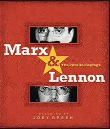 Marx & Lennon: The Parallel Sayings is an anthology of 400 humorous quotes from John Lennon and Groucho Marx on a variety of themes. Quotations are thematically collected in such a way that the top section of a page contains Marx's quotes, and the bottom section contains Lennon's. The book is edited by Joey Green and includes an introduction by Arthur Marx and a foreword by Yoko Ono. Including the index, it is 254 pages long.