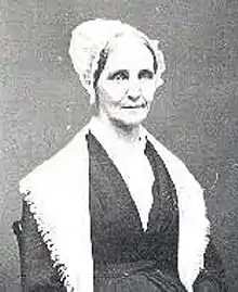 M'Clintock was born on February 20, 1800, in Burlington, New Jersey.[2][3] She was married to Thomas M'Clintock and they were both invested in their Quaker backgrounds, and social reform.[4] Thomas provided for their four daughters and their son by working as a druggist and minister. From the beginning of their marriage in 1820 the lived in Philadelphia until 1836 when they moved to Waterloo, New York.[4][5] By 1833 Marry Ann was very active in the anti-slavery movements in Philadelphia and was one of the founding members of the Philadelphia Female Anti-Slavery Society. She worked closely with abolitionist Lucretia Mott.[4] Once moved to Waterloo, Mary Ann took a more active role in the women's suffragist movement. Mary Ann had a hand in organizing the Seneca Falls Convention, held in July 1848. She and her daughters Elizabeth and Mary Ann also attended the convention and signed the Declaration of Sentiments.[4][5][6] The base of the convention was to present the Declaration of Sentiments, this document drafted by women such as Elizabeth Cady Stanton and Lucretia Mott at the kitchen table of Mary Ann M'Clintock and outlines equal opportunities among men and women.[5][6] The Declaration of Sentiments was modeled after the Declaration of Independence and was the fuel that started the fire that was the suffragist movement which lasted until 1920.[6] However, Mary Ann never got to vote. In 1856 she retired back to Philadelphia and died there on May 21, 1884,[2][3] at the age of 84.[7] She is buried in the Fair Hill Burial Ground in Philadelphia.