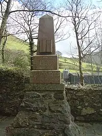 Incised on front lower part of a memorial obelisk erected over the ruin of the cottage where she lived (near north end of Pont Ty'n-y-fach) is this inscription: