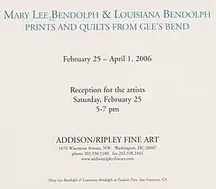 • Mary Lee Bendolph & Louisiana Bendolph: Prints and Quilts from Gee's Bend, Addison/Ripley Fine Art, Washington, DC, February 25 – April 1, 2006.