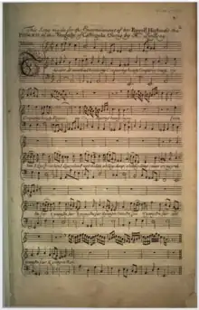 - 1 2 Leveridge, Richard (1705). Tho over all mankind: this song made for the entertainment of her Royall Highness the Princess, in the Tragedy of Calligula. Sung by Mrs Lindsey.