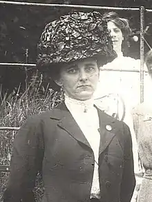 Morris was one of the local women's suffrage leaders at the 1908 garden party at the Blathwayts', alongside Adela Pankhurst, Dorothy Pethick (sister of Emmeline Pethick-Lawrence), Annie Kenney and 230 other guests. The purpose of this event was to raise funds for the West of England women's suffrage movement.[21] In 1910, she was among those named by one of the first female councillors in the country, Miss Sutton from Reading, in her address to the Bath Women's Local Government Association on "women's citizenship."[22] She was also cited in a speech on church and politics at the Church League for Women's Suffrage.[23]